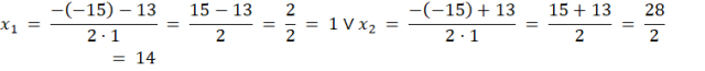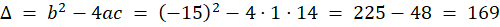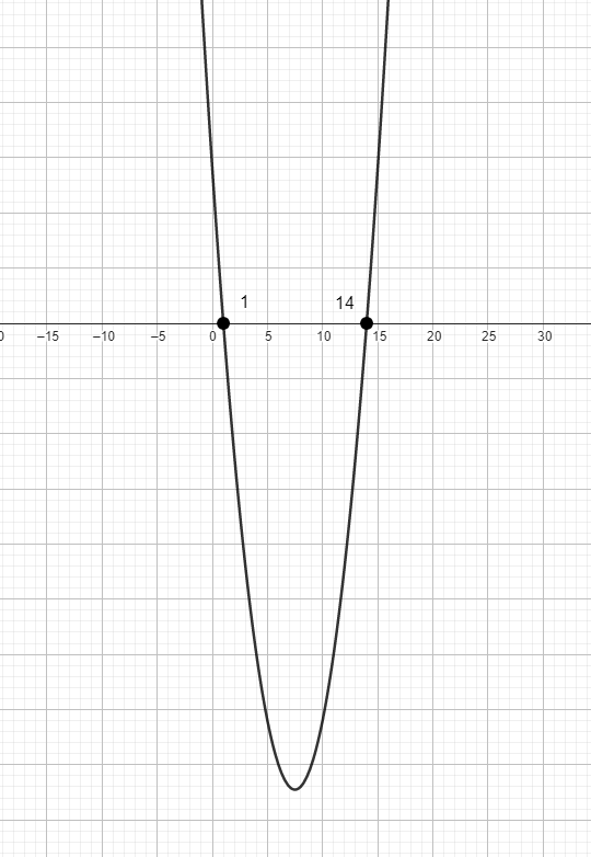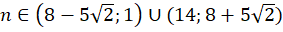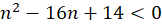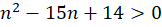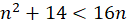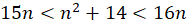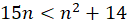 Ustal wartość liczby naturalnej n, która spełnia założenie: jej kwadrat powiększony o 14 jest większy od 15n i mniejszy od 16n.