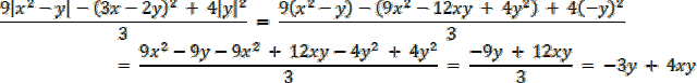 będzie zawsze dodatnie i opuszczając wartość bezwzględną nie zmieniasz znaku, natomiast |y| zawsze ujemny, więc opuszczając musisz zmienić znak.