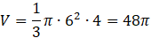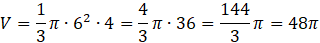 Oblicz objętość stożka o wysokości 4 i średnicy podstawy 12.