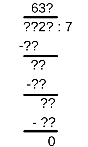 Zastąp znaki zapytania w dzieleniu pisemnym odpowiednimi cyframi.