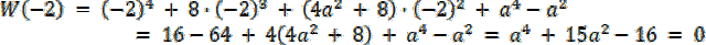 Oblicz wartość wielomianu dla liczby - 2, otrzymane wyrażenie przyrównaj do zera, oblicz a.