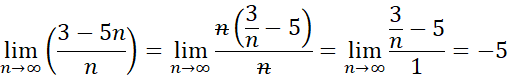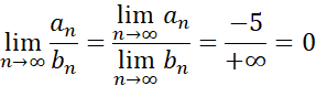 Jeśli spotkamy się z ułamkiem tak, jak w tym przypadku, to należy wyłączyć z licznika i mianownika najwyższe potęgi liczby n. Następnie musisz skrócić wyłączone n. Dalej trzeba sprawdzić, ile wynosi granica z każdego składnika w liczniku i mianowniku.