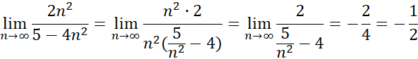 Jeśli spotkamy się z ułamkiem tak, jak w tym przypadku, to należy wyłączyć z licznika i mianownika najwyższe potęgi liczby n. Następnie musisz skrócić wyłączone n. Dalej trzeba sprawdzić, ile wynosi granica z każdego składnika w liczniku i mianowniku.
