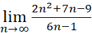 Jeśli spotkamy się z ułamkiem tak, jak w tym przypadku, to należy wyłączyć z licznika i mianownika najwyższe potęgi liczby n. Następnie musisz skrócić wyłączone n. Dalej trzeba sprawdzić, ile wynosi granica z każdego składnika w liczniku i mianowniku.