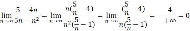 Jeśli spotkamy się z ułamkiem tak, jak w tym przypadku, to należy wyłączyć z licznika i mianownika najwyższe potęgi liczby n. Następnie musisz skrócić wyłączone n. Dalej trzeba sprawdzić, ile wynosi granica z każdego składnika w liczniku i mianowniku.