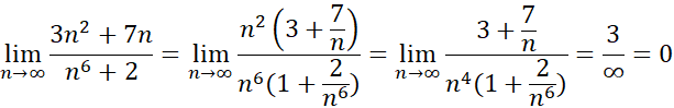 Jeśli spotkamy się z ułamkiem tak, jak w tym przypadku, to należy wyłączyć z licznika i mianownika najwyższe potęgi liczby n. Następnie musisz skrócić wyłączone n. Dalej trzeba sprawdzić, ile wynosi granica z każdego składnika w liczniku i mianowniku.