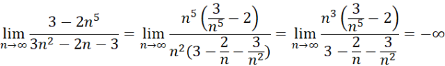 Jeśli spotkamy się z ułamkiem tak, jak w tym przypadku, to należy wyłączyć z licznika i mianownika najwyższe potęgi liczby n. Następnie musisz skrócić wyłączone n. Dalej trzeba sprawdzić, ile wynosi granica z każdego składnika w liczniku i mianowniku.
