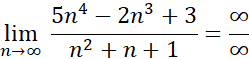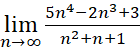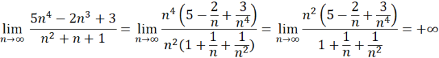 Jeśli spotkamy się z ułamkiem tak, jak w tym przypadku, to należy wyłączyć z licznika i mianownika najwyższe potęgi liczby n. Następnie musisz skrócić wyłączone n. Dalej trzeba sprawdzić, ile wynosi granica z każdego składnika w liczniku i mianowniku.