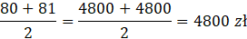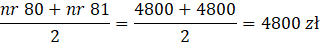 Szukaną wartością jest średnia zarobków pracownika numer 80 i 81. Zauważ że obaj zarabiają 4800 zł miesięcznie.