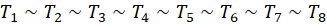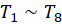 Udowodnij podobieństwo trójkątów T1, T2, T3, T4, T5, T6, T7, T8 (rysunek).