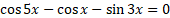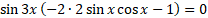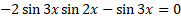 Najpierw należy obliczyć różnicę cosinusów różnych kątów na podstawie wzoru z tablic matematycznych. Zauważ, że teraz w zadaniu są same sinusy. Wyciągnij przed nawias sin3x i zauważ, że jeden z czynników musi być równy 0. Z tego wynika, że