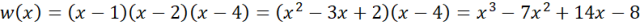 Zapisz miejsca zerowe, zbiór argumentów, dla których przyjmuje wartości dodatnie, oraz wzór wielomianu trzeciego stopnia przedstawionego na rysunku.