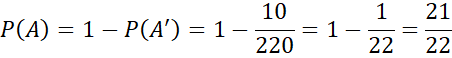 Oblicz ilość wszystkich sprzyjających zdarzeń przeciwnemu i wszystkich zdarzeń elementarnych. Następnie skorzystaj z twierdzenia na prawdopodobieństwo zdarzenia przeciwnego: