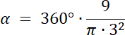 Wykorzystaj dane z podpunktu a), następnie przekształć wzór na pole wycinka koła, w taki sposób, aby można było wyznaczyć z niego wartość kąta środkowego.