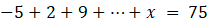 Najpierw zapisz wyrażenie jako sumę wyrazów ciągu. Następnie oblicz niewiadomą n. Na koniec podstaw wartości do równania na x.