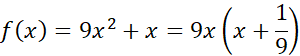 W tym zadaniu, jeśli jest to wykonalne, przedstaw funkcję f(x) = 9x2 + x w formie iloczynowej.