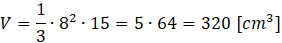 Oblicz objętość ostrosłupa prawidłowego, który jest czworokątny, ma wysokość 15 cm i krawędź podstawy o długości 8 cm.