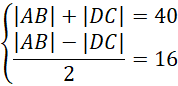Oblicz długość podstaw trapezu rozwiązując poniższy układ równań: