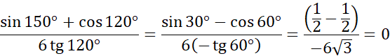 Rozpisz funkcje ze wzorów redukcyjnych , oraz . Pamiętaj, że sinus jest w drugiej ćwiartce dodatni, a cosinus i tangens ujemny.