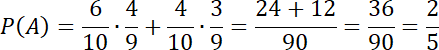 Wyznacz prawdopodobieństwo zdarzenia że druga wylosowana piłeczka jest biała, jeśli w worku znajduje się 10 piłeczek pingpongowych: 6 pomarańczowych i 4 białe. Antek wyjmuje losowo jedną piłeczkę i nie zwracając jej losuje drugą piłeczkę.