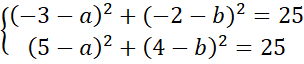 Zapisz równanie okręgu o promieniu 5, do którego należą punkty A i B. A(-3,-2), B(5,4)