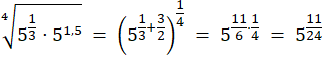 Zapisz pierwiastek jako potęgę o wykładniku wymiernym, a wyrażenie pod pierwiastkiem jako jedną potęgę liczby 5. Skorzystaj z praw działań na potęgach i uprość wyrażenie – zapisz je jako jedną potęgę.