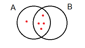 Umieść 1 element tylko w zbiorze A i 4 elementy w części wspólnej zbiorów.
