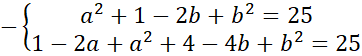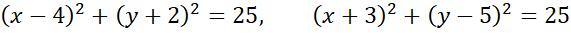 Zapisz równanie okręgu o promieniu 5, do którego należą punkty A i B. A(0,1), B(1,2)