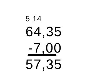 Pamiętaj o kolejności wykonywania działań. Najpierw wykonuje się działania w nawiasie, a następnie potęgowanie, potem mnożenie i dzielenie, a na końcu dodawanie i odejmowanie. Wykonując odejmowanie pisemne najpierw, należy odjąć cyfry w słupku najbardziej z prawej. Jeśli nie można odjąć cyfr, ponieważ odjemnik jest większy od odjemnej, to należy pożyczyć jedną dziesiątkę ze słupka z lewej strony. Wtedy odjemna w słupku, w którym wykonujemy odejmowanie stanie się o dziesięć większa, a odjemna w kolejnym na lewo słupku zmaleje o jeden. W taki sam sposób należy odejmować każdy kolejny słupek, zaczynając od prawej i idąc do lewej. Pamiętaj, że przecinek wyniku będzie znajdował się pod przecinkami liczb, jakie odejmujesz.