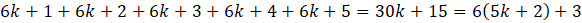 Musisz wyznaczyć resztę z dzielenia sumy pięciu kolejnych liczb całkowitych niepodzielnych przez 6 przy dzieleniu jej przez: 6.