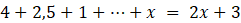 Najpierw zapisz wyrażenie jako sumę wyrazów ciągu. Następnie oblicz niewiadomą n. Na koniec podstaw wartości do równania na x.