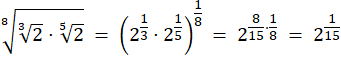 Zapisz pierwiastek jako potęgę o wykładniku wymiernym, a wyrażenie pod „dużym” pierwiastkiem jako jedną potęgę liczby 2. Skorzystaj z praw działań na potęgach i uprość wyrażenie – zapisz je jako jedną potęgę.