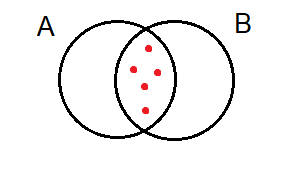 Narysuj na diagramie pięć elementów w taki sposób, by zbiory A i B miały odpowiednio 5 i 5 elementów.