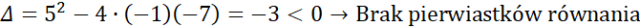 W tym zadaniu, jeśli jest to wykonalne, przedstaw funkcję f(x) = -x2 + 5x – 7 w formie iloczynowej.