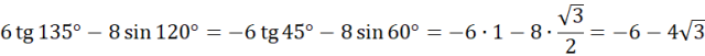 Rozpisz funkcje ze wzorów redukcyjnych i . Pamiętaj, że sinus jest w drugiej ćwiartce dodatni, a tangens ujemny.