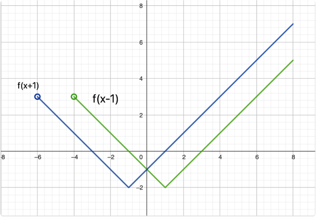 Narysuj wykres funkcji i przesuwając wykres funkcji f o odpowiednio jedną jednostkę w lewo i jedną jednostkę w prawo: