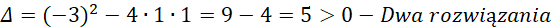 Rozpisujemy i rozwiązujemy założenia, następnie przyrównujemy licznik do 0 i rozwiązujemy równoważne równanie kwadratowe, porównujemy otrzymane rozwiązanie z założeniami i zapisujemy końcową odpowiedź.