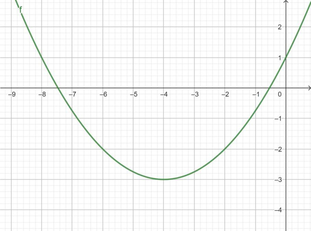 Punkt przecięcia z osią OY: (0, 1), punkt A( - 8, 1).