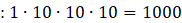 - 1 stoi na miejscu tysięcy – 1 możliwość. Wtedy na pozostałych trzech miejscach może stać każda z liczb od 0 do 9 – 10 możliwości.