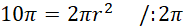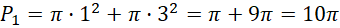 Pole figury F1 złożonej z dwóch stycznych zewnętrznie kół o promieniach 1 i 3 jest równe polu figury F2 złożonej z dwóch stycznych zewnętrznie kół o promieniach długości r. Długość r promienia jest równa