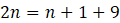 Z treści równania wiesz, że liczba wierzchołków graniastosłupa jest o 9 większa od liczby wierzchołków ostrosłupa. Zapisz to za pomocą równania i wyznacz wartość
