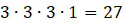 Na trzech pierwszych miejscach może stać każda z liczb 1, 2, 3. Na ostatnim miejscu może stać tylko 2.