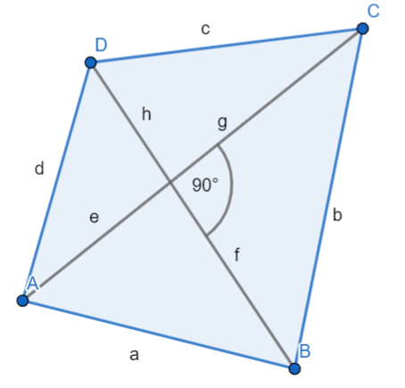 Przekątne czworokąta przecinają się pod kątem prostym.