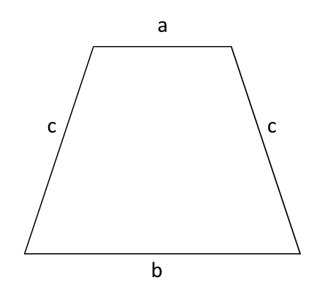 Niech a i b to będą długości podstaw, a c to będzie długość ramienia: