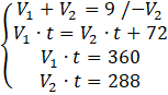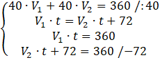 Na początku musisz oznaczyć symbolami prędkości obu sportowców i czas, w którym szybszy sportowiec przebiegł okrążenie. Następnie musisz zapisać pierwsze równanie, w którym suma dróg przebytych przez każdego ze sportowców, kiedy biegli w przeciwnych kierunkach, wynosi 360 (musisz wyznaczyć ze wzoru na prędkość
