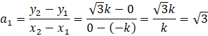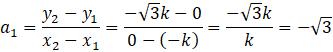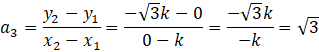 W tym zadaniu musisz wyznaczyć brakujący, trzeci punkt trójkąta równobocznego, a następnie wyznaczyć współczynniki kierunkowe prostych zawierających boki tego trójkąta.