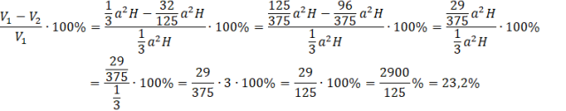 Oblicz objętość bryły przed i po zmianach i zauważ, że objętość zmalała o 23,2%.