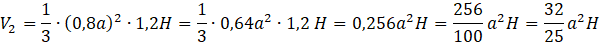 Długość krawędzi podstawy ostrosłupa prawidłowego czworokątnego zmniejszono o 20%, a jednocześnie wysokość całej bryły zwiększono o 20%. Oblicz, czy objętość bryły wzrosła czy zmalała, i o ile procent.
