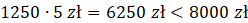 Oblicz, ile monet można ułożyć przy każdej krawędzi stołu. Kolejno oblicz ile monet możesz ułożyć na tym stole i oblicz wartość monet położonych na stole. Zauważ, że jest to mniej niż 8000 zł.