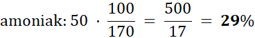 Odp.: Procentowy skład tej mieszaniny to: 29% amoniaku, 12% kredy oraz 59% wody.
